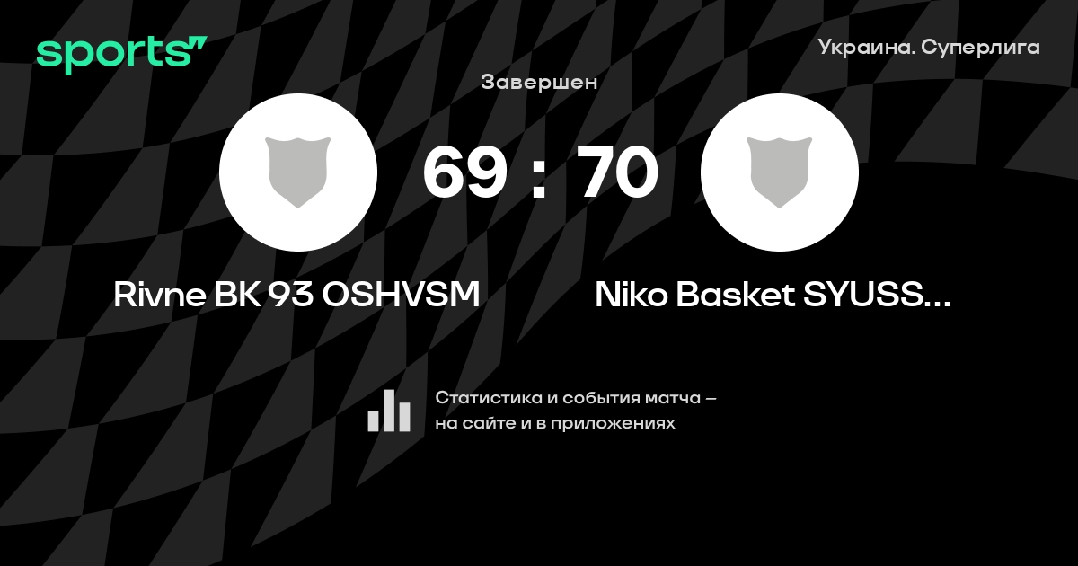 В прошедшем матче в рамках турнира Украина. Суперлига состоялась встреча команд Rivne BK 93 OSHVSM - Niko Basket SYUSSHOR No. 4 MVUFK TSOP в городе на стадионе Palats Sportu Veneto-Sport
