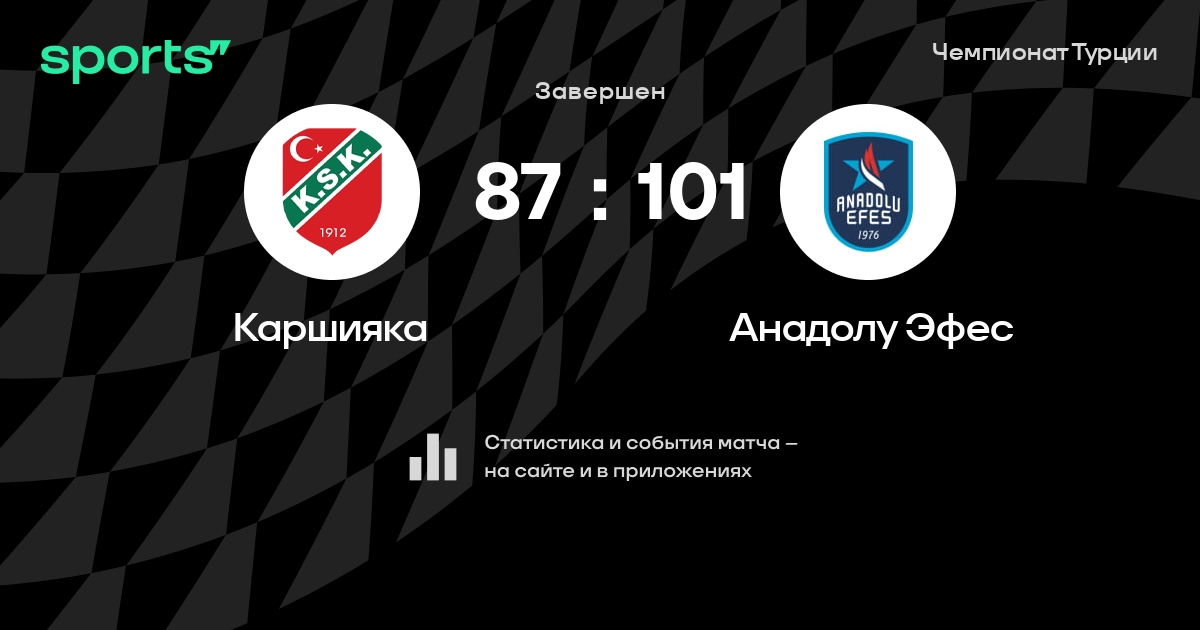 В прошедшем матче в рамках турнира Чемпионат Турции состоялась встреча команд Каршияка - Анадолу Эфес в городе Измир (Турция) на стадионе Каршияка Арена (вместимость - 6500)