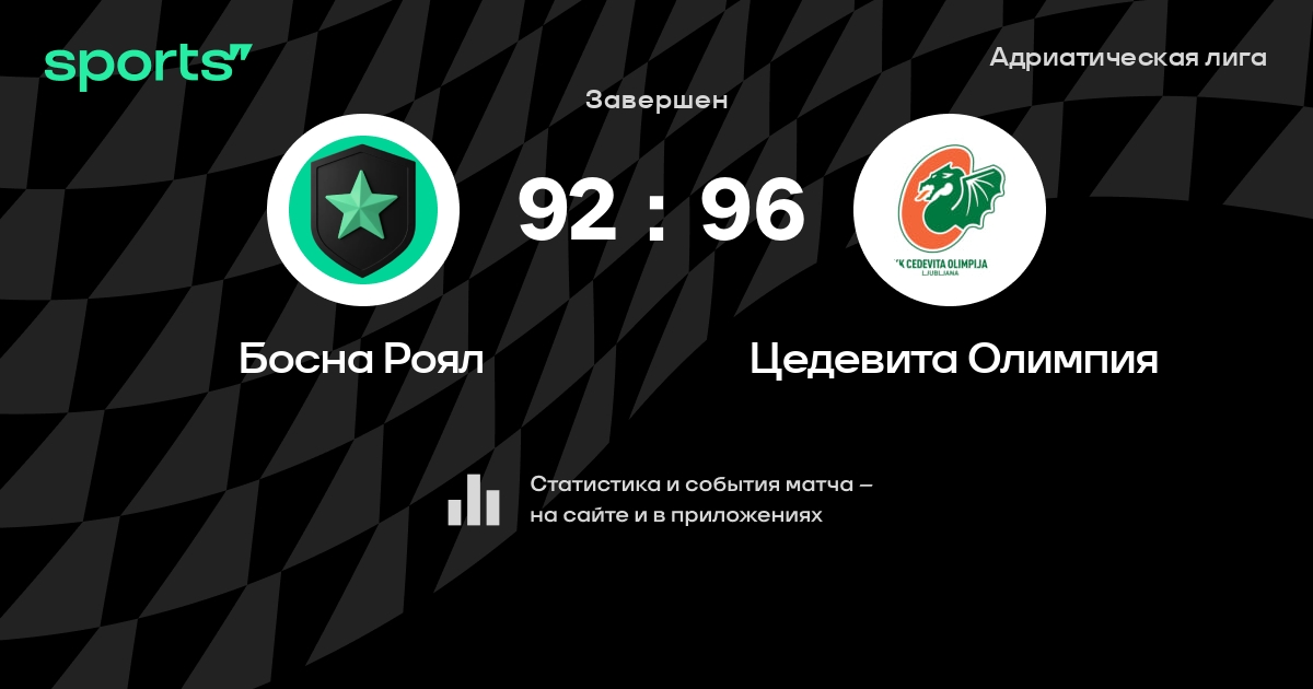 В прошедшем матче в рамках турнира Адриатическая лига состоялась встреча команд Босна Роял - Цедевита Олимпия в городе на стадионе Olimpijska dvorana Juan Antonio Samaranc
