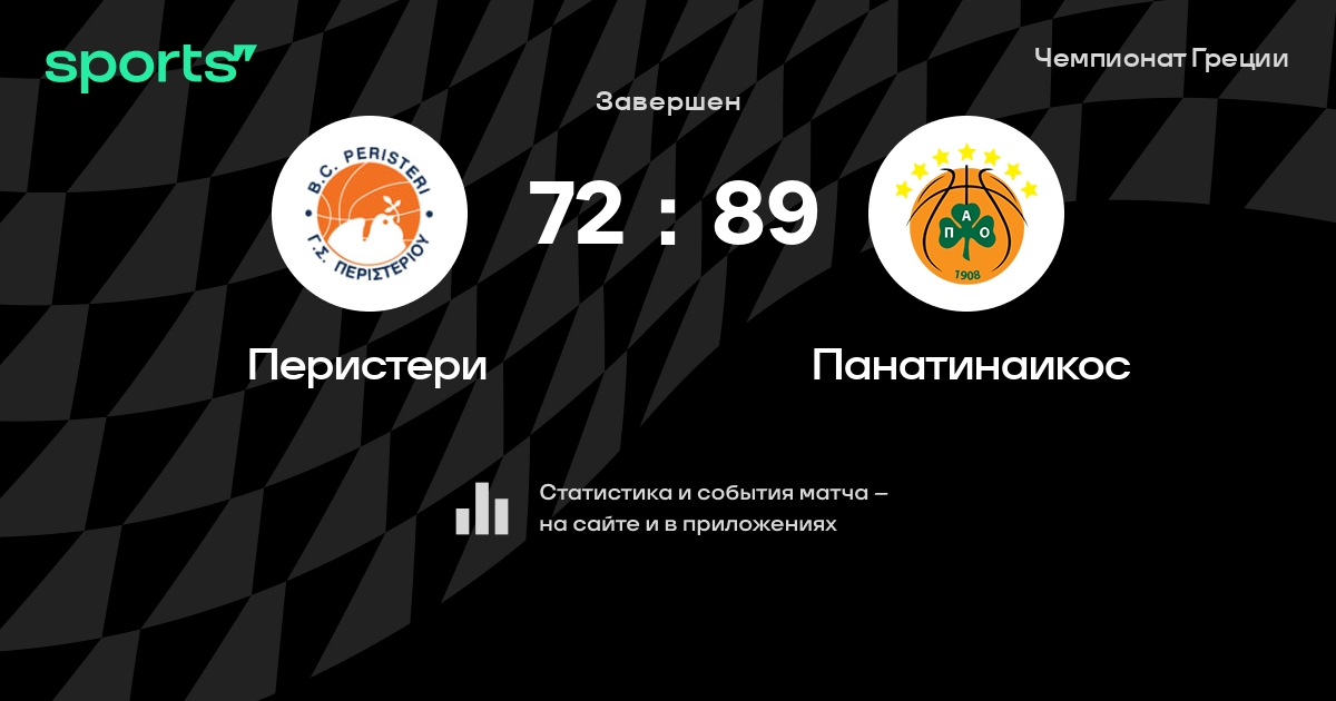 В прошедшем матче в рамках турнира Чемпионат Греции состоялась встреча команд Перистери - Панатинаикос в городе на стадионе Kleisto Andreas Papandreou