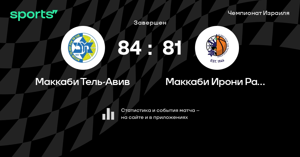 В прошедшем матче в рамках турнира Чемпионат Израиля состоялась встреча команд Маккаби Тель-Авив - Маккаби Ирони Рамат-Ган в городе Тель-Авив (Израиль) на стадионе Менора-Мивтахим Арена (вместимость - 11700)
