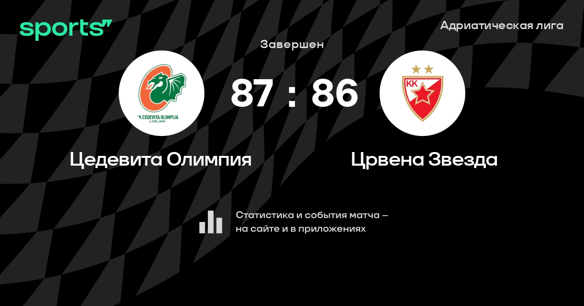 В прошедшем матче в рамках турнира Адриатическая лига состоялась встреча команд Цедевита Олимпия - Црвена Звезда в городе на стадионе Dvorana Stožice