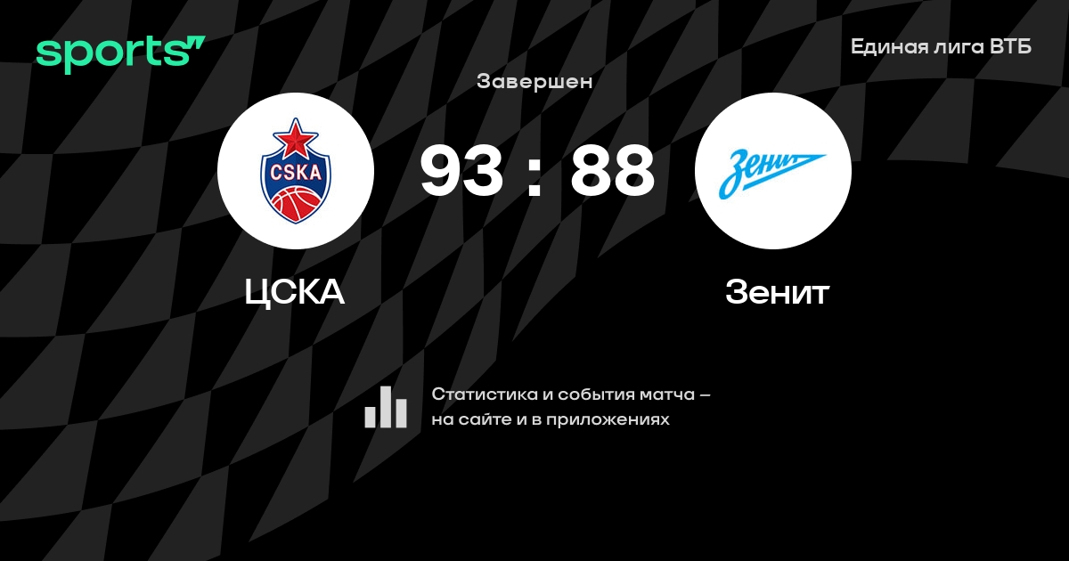 В прошедшем матче в рамках турнира Единая лига ВТБ состоялась встреча команд ЦСКА - Зенит в городе Москва (Россия) на стадионе Мегаспорт (вместимость - 13126)