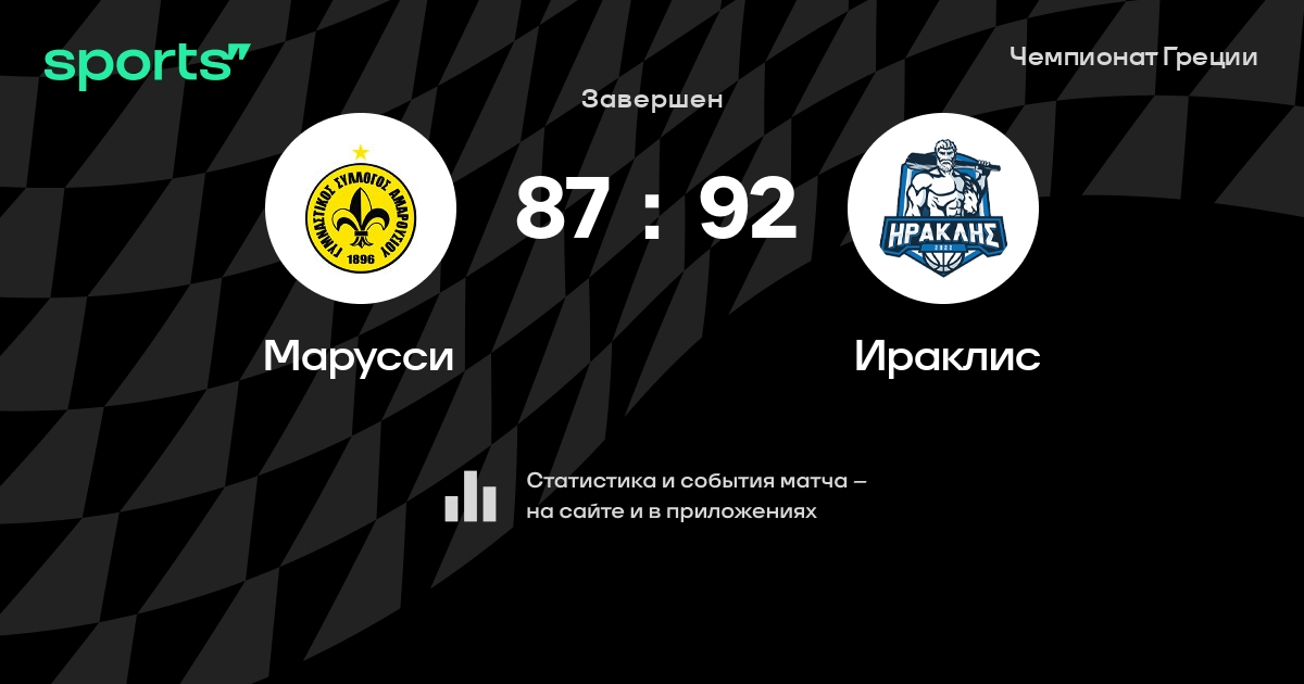 В прошедшем матче в рамках турнира Чемпионат Греции состоялась встреча команд Марусси - Ираклис в городе на стадионе Dimotiko Gimnastirio Amarousiou