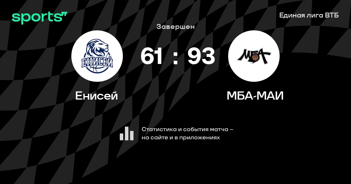 В прошедшем матче в рамках турнира Единая лига ВТБ состоялась встреча команд Енисей - МБА-МАИ в городе Красноярск (Россия) на стадионе Арена-Север