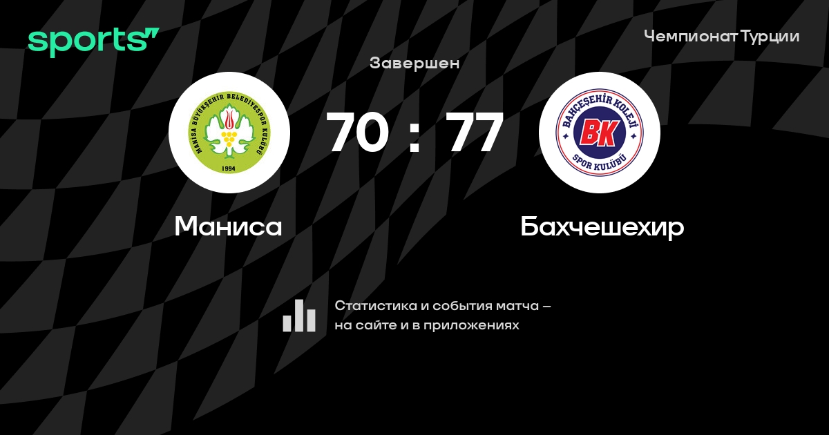 В прошедшем матче в рамках турнира Чемпионат Турции состоялась встреча команд Маниса - Бахчешехир в городе на стадионе Muradiye Spor Salonu