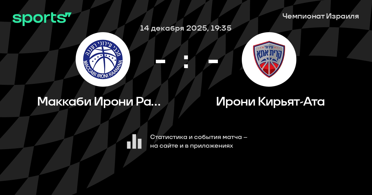 В предстоящем матче в рамках турнира Чемпионат Израиля пройдет встреча команд Маккаби Ирони Раанана - Ирони Кирьят-Ата .