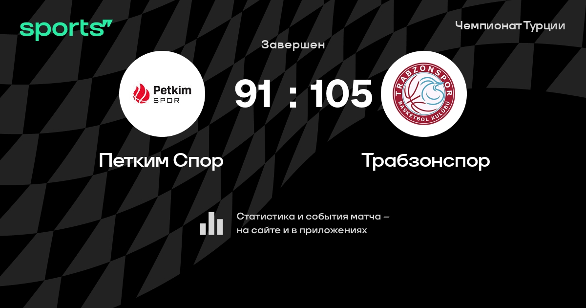 В прошедшем матче в рамках турнира Чемпионат Турции состоялась встреча команд Петким Спор - Трабзонспор в городе Aliaga, Izmir на стадионе Enka Sport Hall