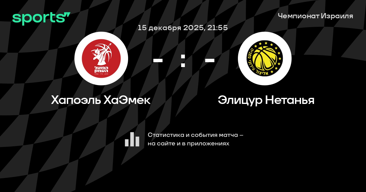 В предстоящем матче в рамках турнира Чемпионат Израиля пройдет встреча команд Хапоэль ХаЭмек - Элицур Нетанья в городе Gan Ner на стадионе Gan Ner Sports Hall.