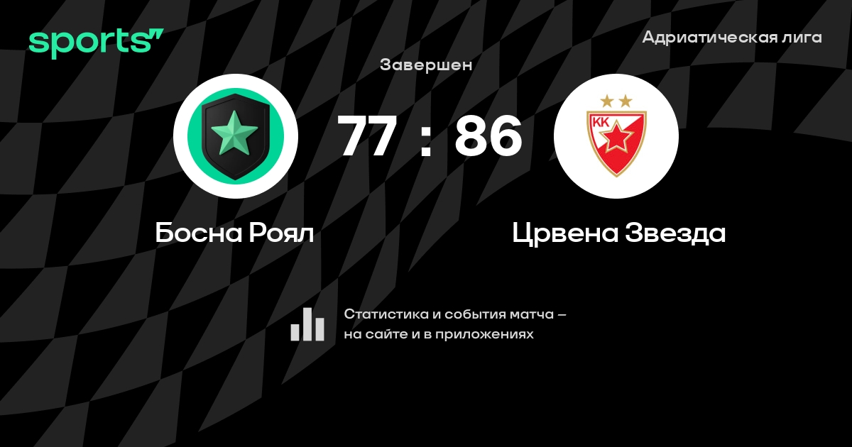 В прошедшем матче в рамках турнира Адриатическая лига состоялась встреча команд Босна Роял - Црвена Звезда в городе на стадионе Olimpijska dvorana Juan Antonio Samaranc