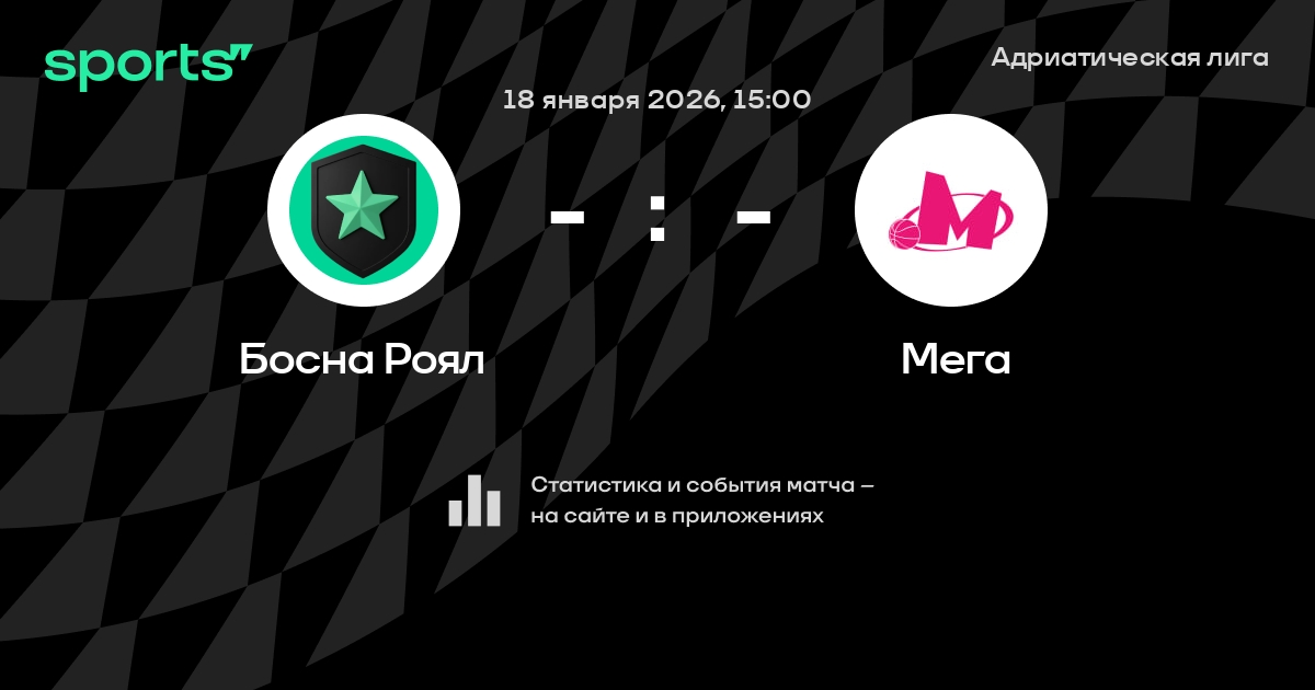 В предстоящем матче в рамках турнира Адриатическая лига пройдет встреча команд Босна Роял - Мега в городе на стадионе Olimpijska dvorana Juan Antonio Samaranc.
