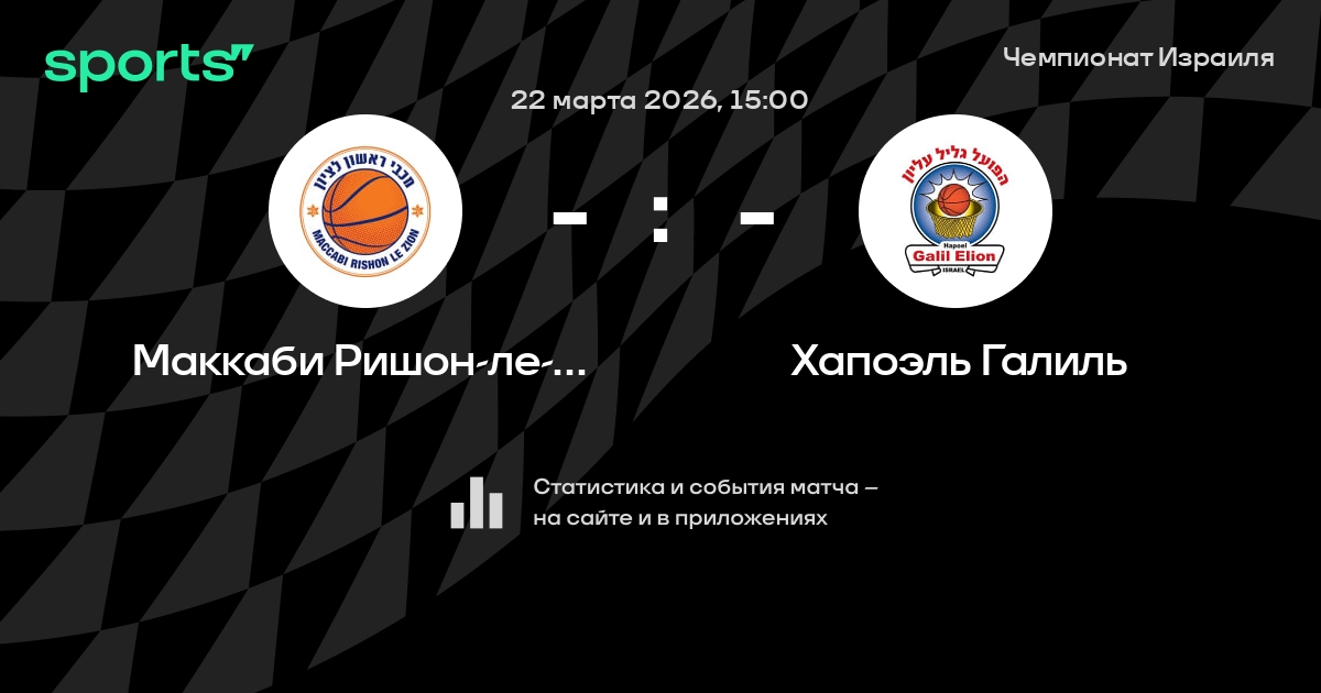 В предстоящем матче в рамках турнира Чемпионат Израиля пройдет встреча команд Маккаби Ришон-ле-Цион - Хапоэль Галиль .