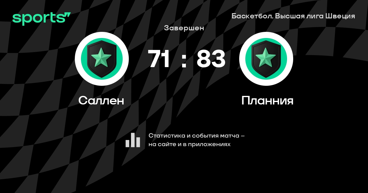 В прошедшем матче в рамках турнира Баскетбол. Высшая лига Швеция состоялась встреча команд Саллен - Планния