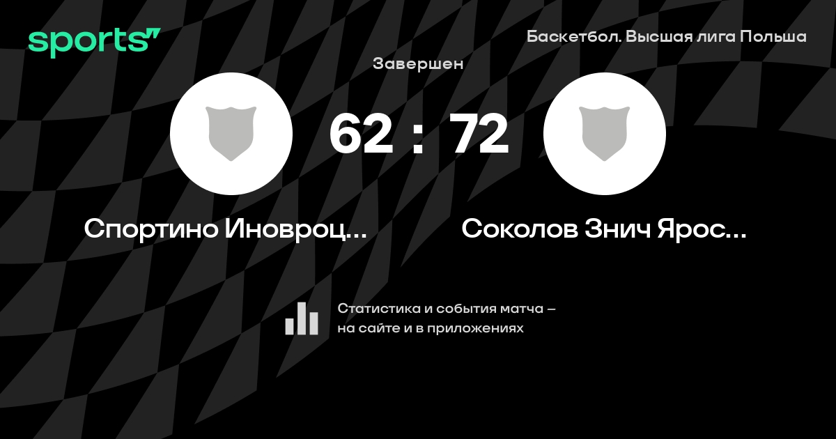 В прошедшем матче в рамках турнира Баскетбол. Высшая лига Польша состоялась встреча команд Спортино Иновроцлав - Соколов Знич Ярослав