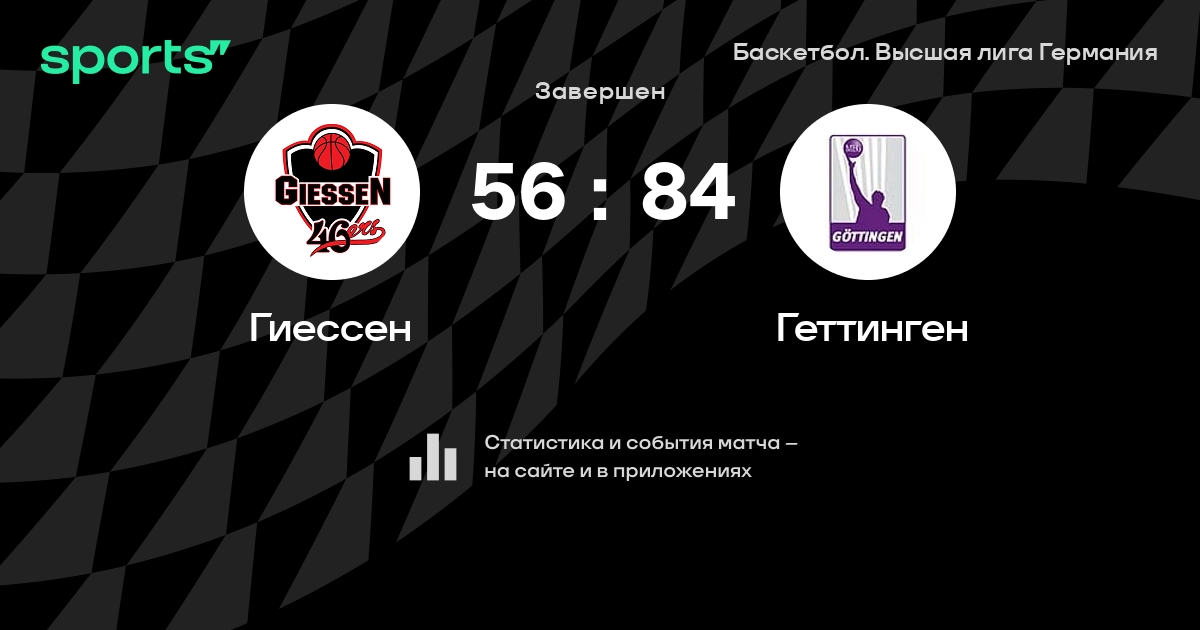 В прошедшем матче в рамках турнира Баскетбол. Высшая лига Германия состоялась встреча команд Гиессен - Геттинген