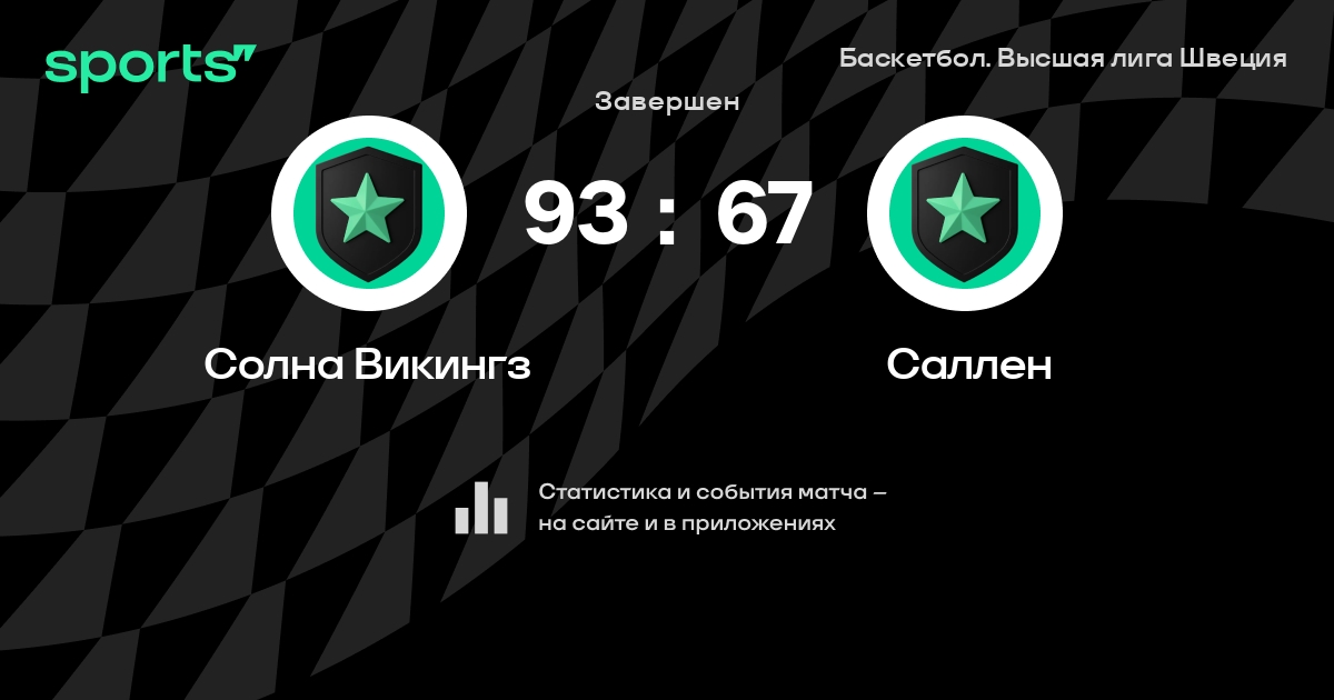 В прошедшем матче в рамках турнира Баскетбол. Высшая лига Швеция состоялась встреча команд Солна Викингз - Саллен