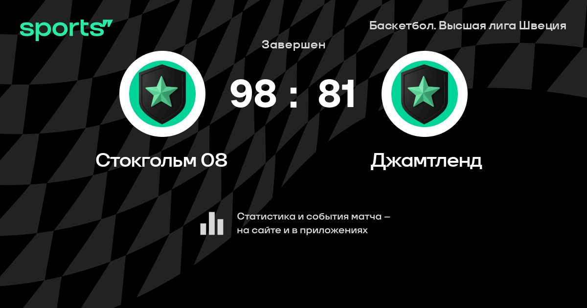 В прошедшем матче в рамках турнира Баскетбол. Высшая лига Швеция состоялась встреча команд Стокгольм 08 - Джамтленд