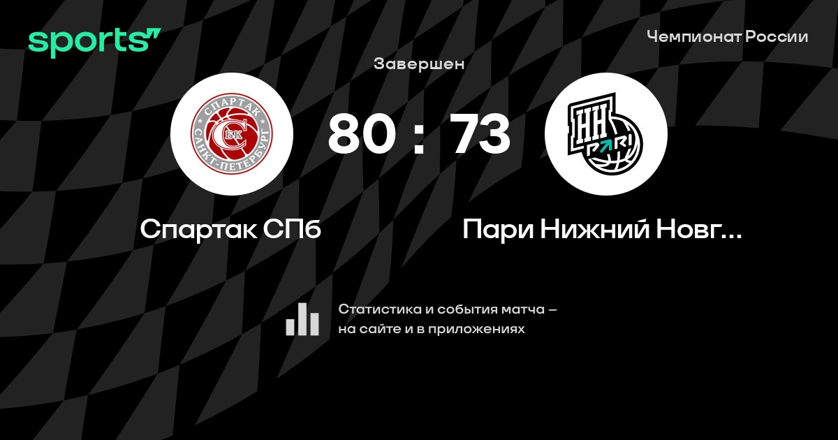 В прошедшем матче в рамках турнира Чемпионат России (Неделя 7) состоялась встреча команд Спартак СПб - Пари Нижний Новгород