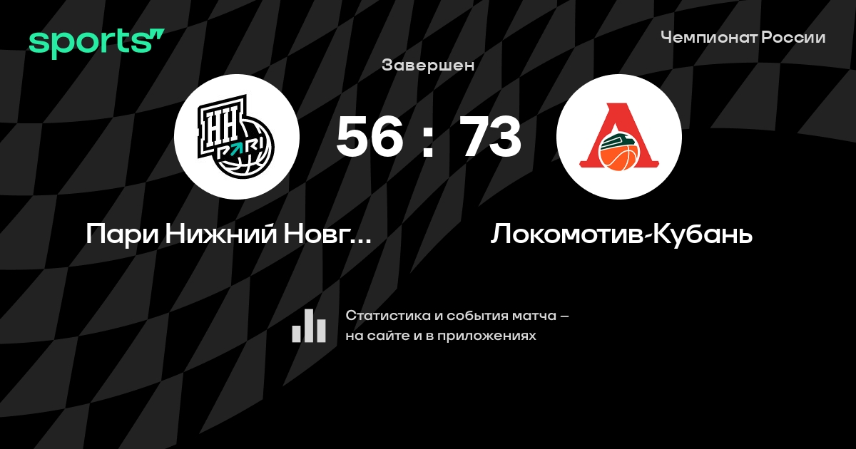 Как прошел матч, смотрите в текстовой трансляции Пари Нижний Новгород - Локомотив-Кубань на Sports.ru