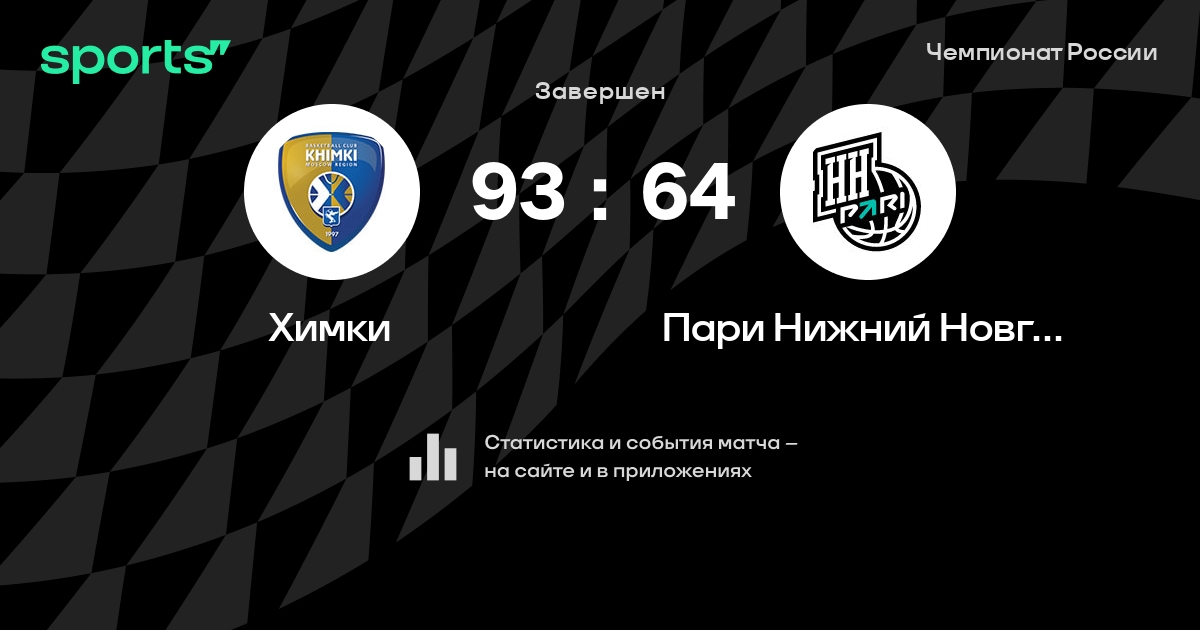 В прошедшем матче в рамках турнира Чемпионат России (Неделя 17) состоялась встреча команд Химки - Пари Нижний Новгород