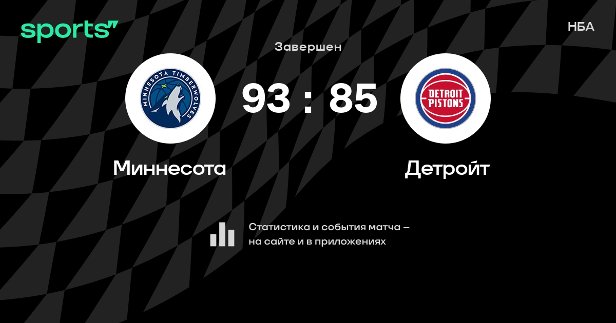 В прошедшем матче в рамках турнира НБА (Неделя 4) состоялась встреча команд Миннесота - Детройт в городе Миннеаполис (США) на стадионе Target Center (вместимость - 20500)