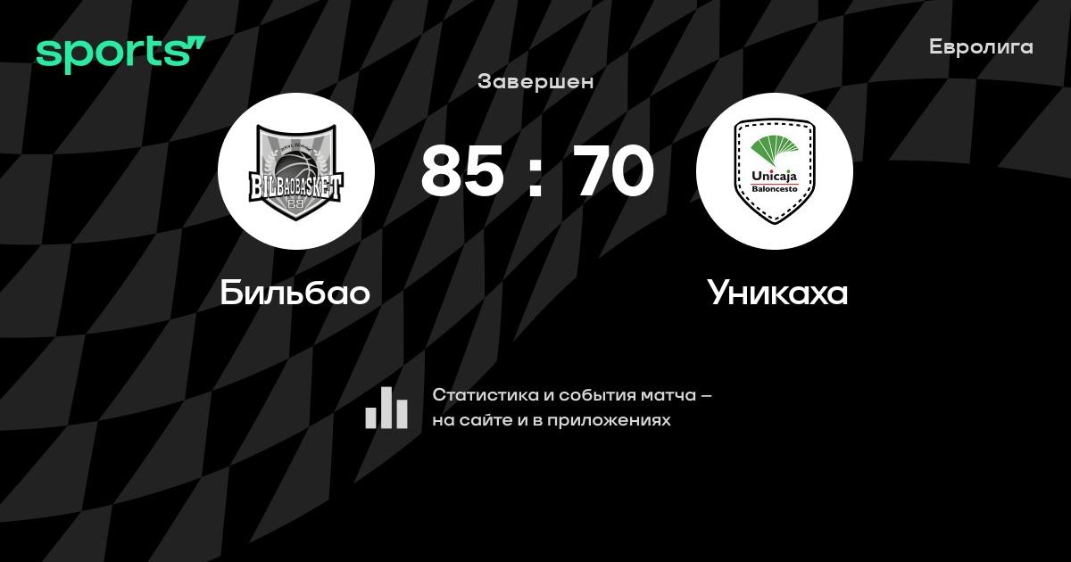 В прошедшем матче в рамках турнира Евролига (Топ 16) состоялась встреча команд Бильбао - Уникаха в городе Bilbao на стадионе Camino Tellaetxe