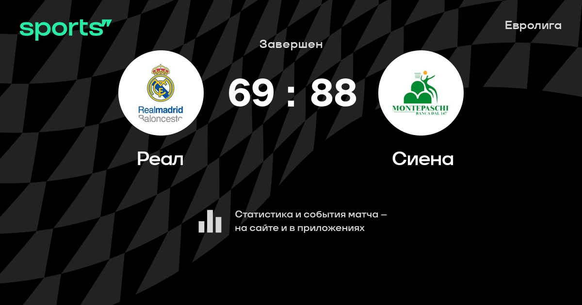 В прошедшем матче в рамках турнира Евролига (Топ 16) состоялась встреча команд Реал - Сиена в городе Madrid на стадионе Palacio Vistalegre
