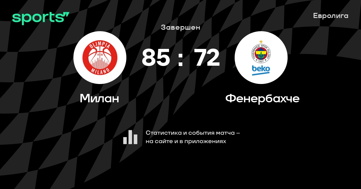 В прошедшем матче в рамках турнира Евролига (Топ 16) состоялась встреча команд Милан - Фенербахче в городе Ассаго (Италия) на стадионе Униполь Форум (вместимость - 11200)