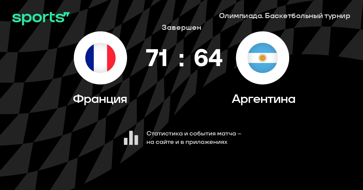 В прошедшем матче в рамках турнира Олимпиада. Баскетбольный турнир (Группа A) состоялась встреча команд Франция - Аргентина в городе Лондон (Англия) на стадионе Баскетбольная Олимпийская Арена (вместимость - 12000)