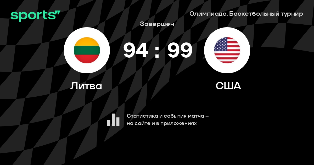 В прошедшем матче в рамках турнира Олимпиада. Баскетбольный турнир (Группа A) состоялась встреча команд Литва - США в городе Лондон (Англия) на стадионе Баскетбольная Олимпийская Арена (вместимость - 12000)