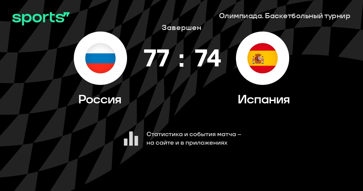 В прошедшем матче в рамках турнира Олимпиада. Баскетбольный турнир (Группа B) состоялась встреча команд Россия - Испания в городе Лондон (Англия) на стадионе Баскетбольная Олимпийская Арена (вместимость - 12000)