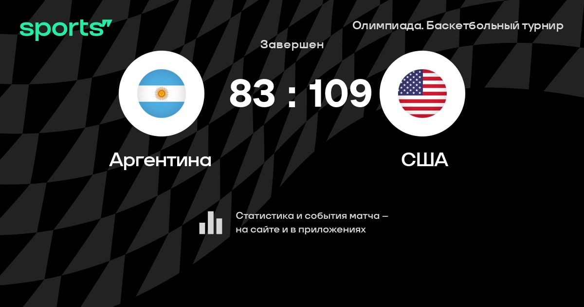 В прошедшем матче в рамках турнира Олимпиада. Баскетбольный турнир (Полуфинал) состоялась встреча команд Аргентина - США в городе Лондон (Англия) на стадионе О2 Арена (вместимость - 20000)