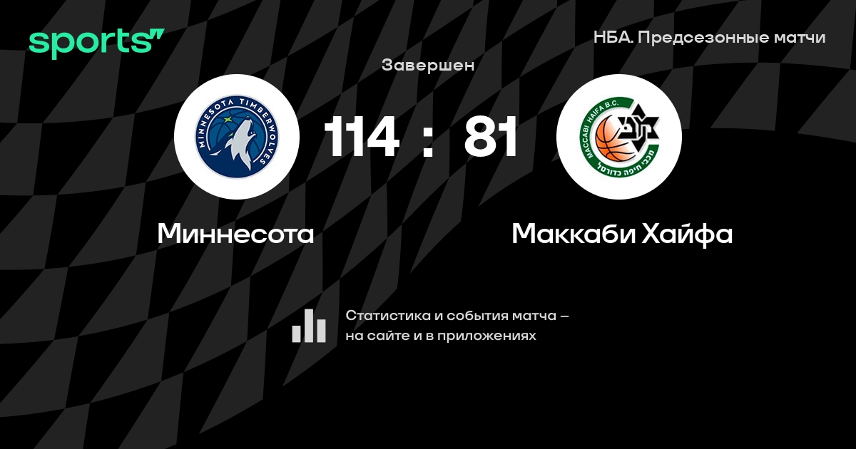 В прошедшем матче в рамках турнира НБА. Предсезонные матчи состоялась встреча команд Миннесота - Маккаби Хайфа в городе Миннеаполис (США) на стадионе Target Center (вместимость - 20500)