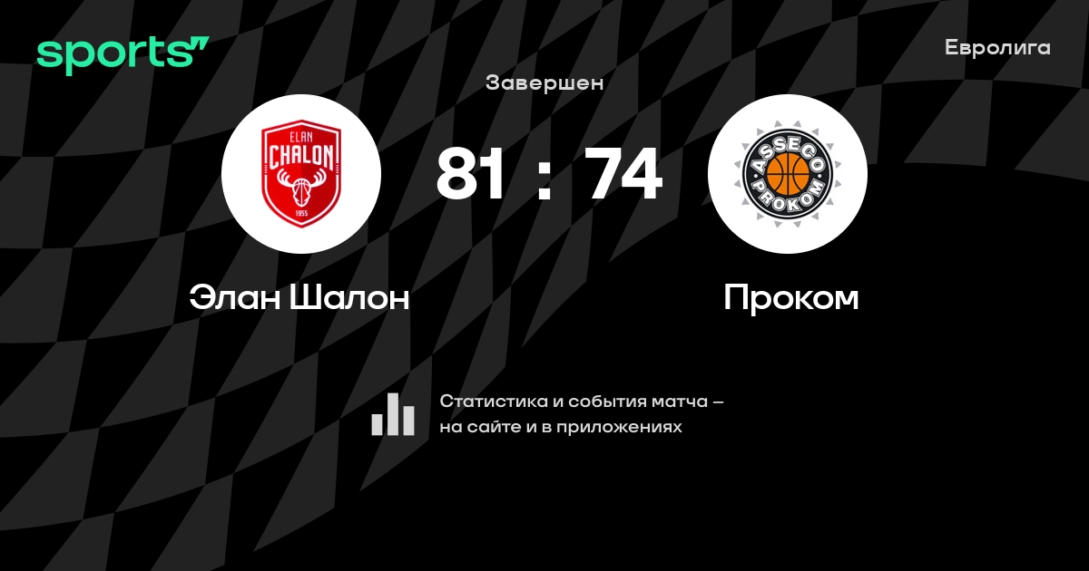 В прошедшем матче в рамках турнира Евролига (Группа B) состоялась встреча команд Элан Шалон - Проком в городе Шалон-сюр-Сон (Франция) на стадионе Ле Колизее (вместимость - 5000)