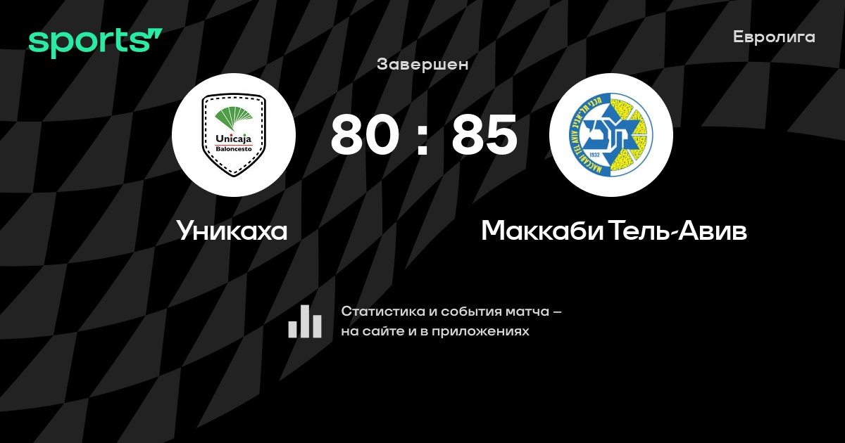 В прошедшем матче в рамках турнира Евролига (Группа B) состоялась встреча команд Уникаха - Маккаби Тель-Авив в городе Малага (Испания) на стадионе Паласио де Депортес де Малага (вместимость - 10500)