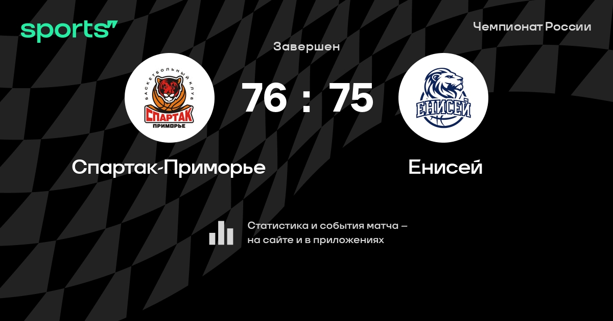 В прошедшем матче в рамках турнира Чемпионат России состоялась встреча команд Спартак-Приморье - Енисей