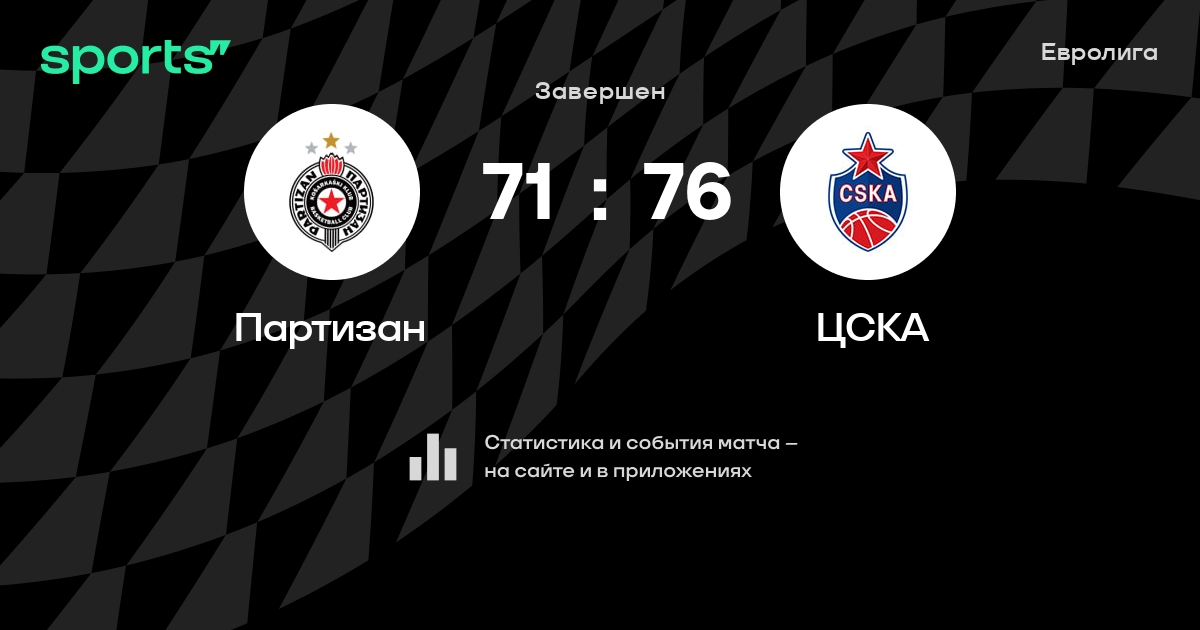 В прошедшем матче в рамках турнира Евролига (Группа D) состоялась встреча команд Партизан - ЦСКА в городе Белград (Сербия) на стадионе Александар Николич Холл (вместимость - 7000)
