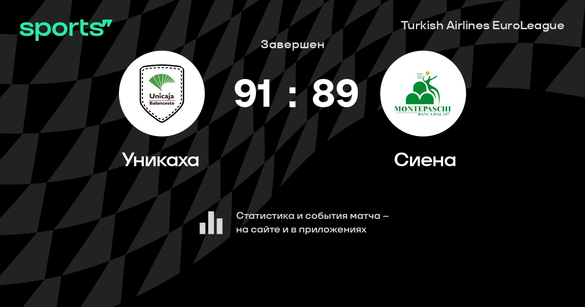 В прошедшем матче в рамках турнира Turkish Airlines EuroLeague (Группа B) состоялась встреча команд Уникаха - Сиена в городе Малага (Испания) на стадионе Паласио де Депортес де Малага (вместимость - 10500)