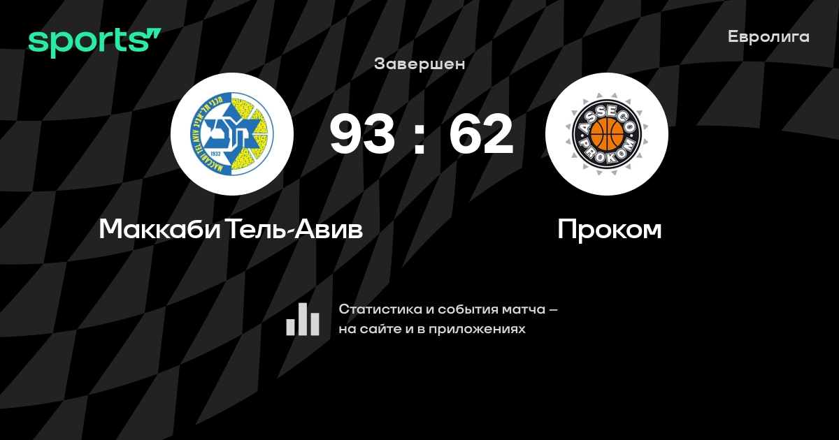 В прошедшем матче в рамках турнира Евролига (Группа B) состоялась встреча команд Маккаби Тель-Авив - Проком в городе Тель-Авив (Израиль) на стадионе Менора-Мивтахим Арена (вместимость - 11700)