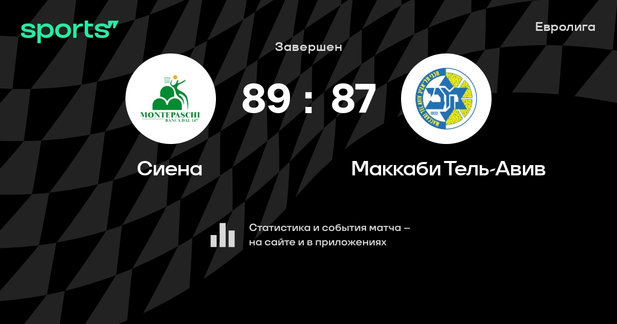 В прошедшем матче в рамках турнира Евролига (Группа B) состоялась встреча команд Сиена - Маккаби Тель-Авив в городе Сиена (Италия) на стадионе ПалаЭстра (вместимость - 1976)