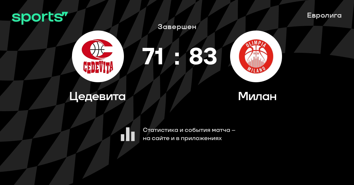 В прошедшем матче в рамках турнира Евролига (Группа C) состоялась встреча команд Цедевита - Милан в городе Загреб (Хорватия) на стадионе Арена им. Дражена Петровича (вместимость - 5400)