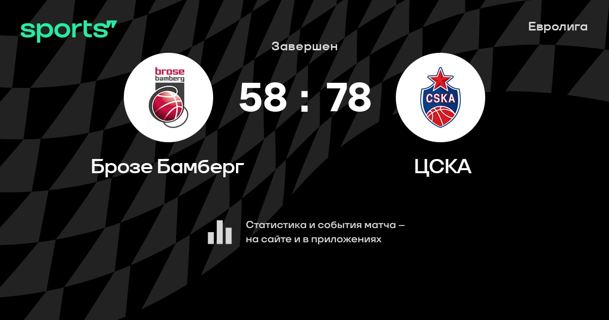 В прошедшем матче в рамках турнира Евролига (Топ 16. Группа E) состоялась встреча команд Брозе Бамберг - ЦСКА в городе Бамберг (Германия) на стадионе Брозе Арена (вместимость - 6800)