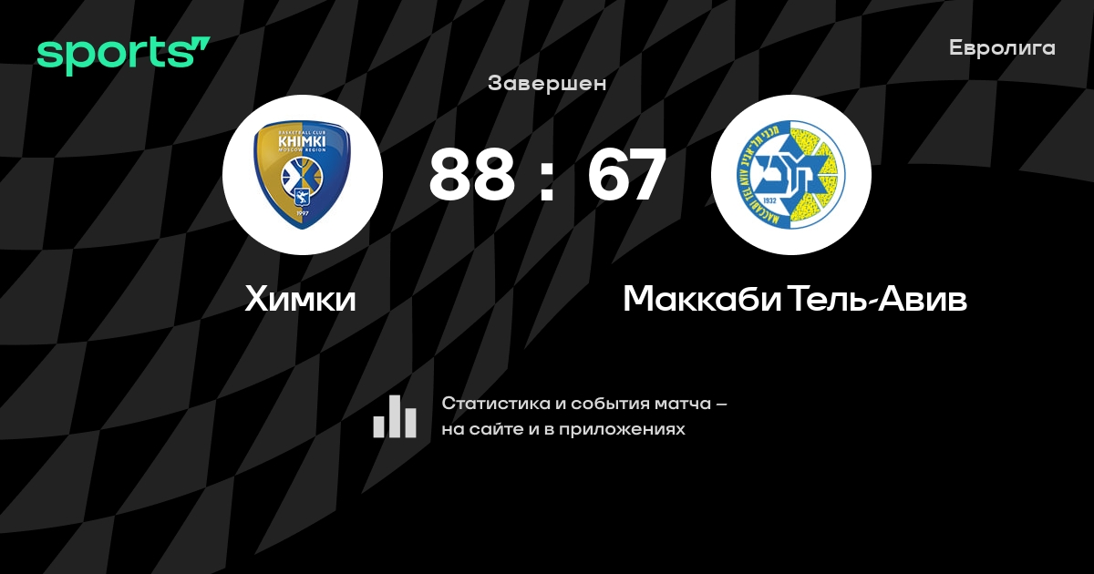 В прошедшем матче в рамках турнира Евролига (Топ 16. Группа F) состоялась встреча команд Химки - Маккаби Тель-Авив в городе Химки (Россия) на стадионе Баскетбольный центр Химки (вместимость - 3500)
