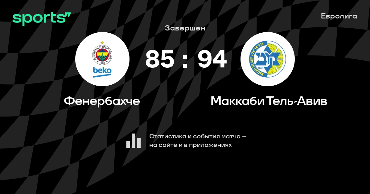 В прошедшем матче в рамках турнира Евролига (Топ 16. Группа F) состоялась встреча команд Фенербахче - Маккаби Тель-Авив в городе Стамбул (Турция) на стадионе Улкер Спортс Арена (вместимость - 13000)