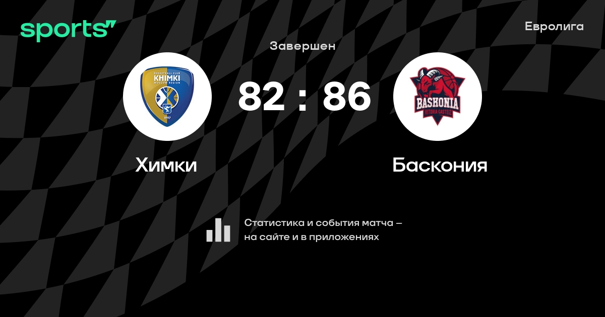 В прошедшем матче в рамках турнира Евролига (Топ 16. Группа F) состоялась встреча команд Химки - Баскония в городе Химки (Россия) на стадионе Баскетбольный центр Химки (вместимость - 3500)