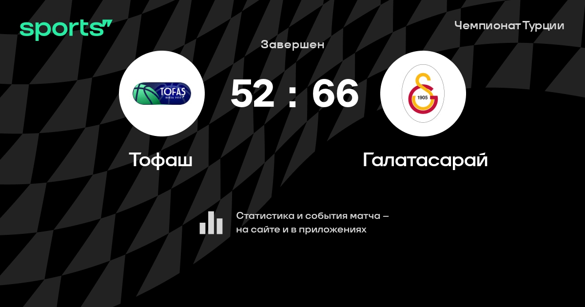 В прошедшем матче в рамках турнира Чемпионат Турции состоялась встреча команд Тофаш - Галатасарай в городе Altiparmak, Bursa на стадионе Bursa Atat?rk Sport Hall