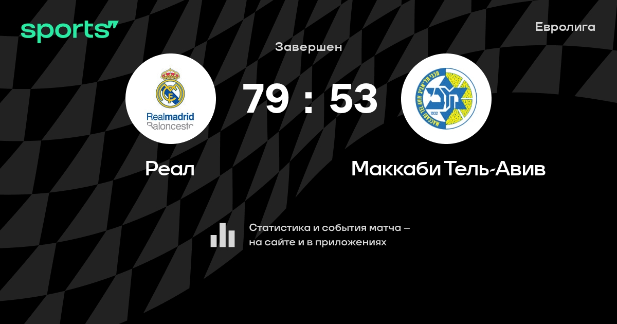 В прошедшем матче в рамках турнира Евролига (Четвертьфинал) состоялась встреча команд Реал - Маккаби Тель-Авив в городе Мадрид (Испания) на стадионе Мовистар Арена (вместимость - 15000)