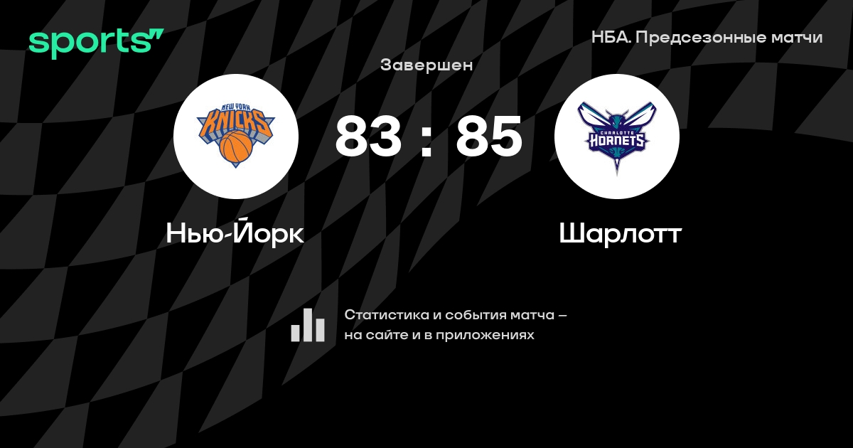В прошедшем матче в рамках турнира НБА. Предсезонные матчи состоялась встреча команд Нью-Йорк - Шарлотт в городе Нью-Йорк (США) на стадионе Madison Square Garden (вместимость - 19763)