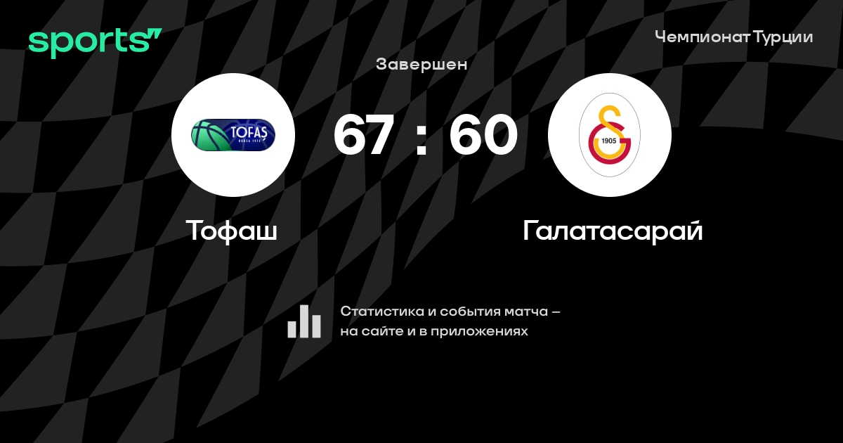 В прошедшем матче в рамках турнира Чемпионат Турции состоялась встреча команд Тофаш - Галатасарай в городе Altiparmak, Bursa на стадионе Bursa Atat?rk Sport Hall