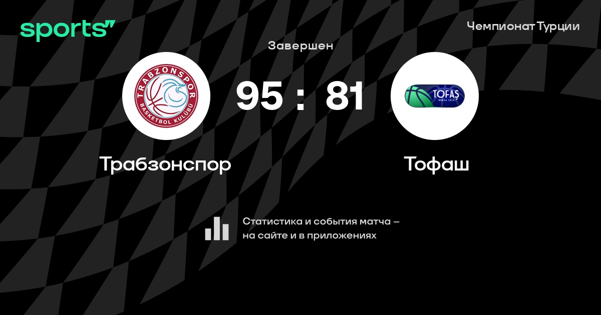 В прошедшем матче в рамках турнира Чемпионат Турции состоялась встреча команд Трабзонспор - Тофаш в городе Pelitli, Trabzon на стадионе Hayri G?r Sport Hall